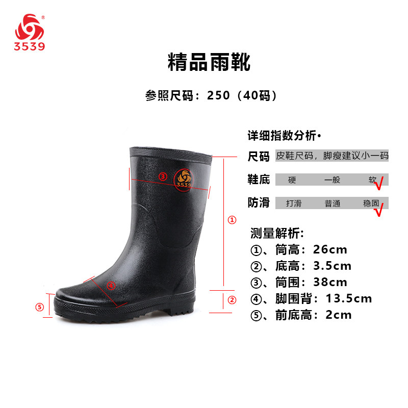 International Hua 3539 New Men's Rain Boots Outdoor Non-slip Working Rubber Boots Black Waterproof Soft Rubber Fishing Boots In