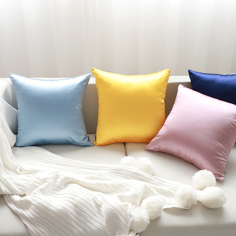 High precision silk pillow solid color sofa pillow cushion simple smooth living room silk pillow cover