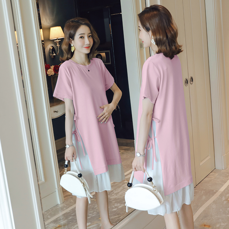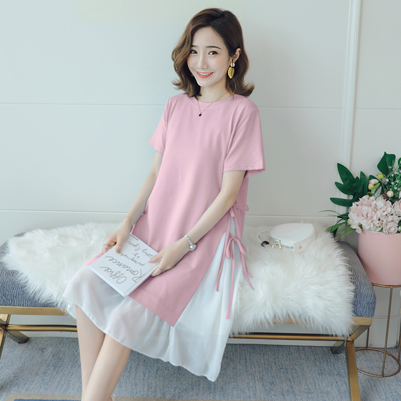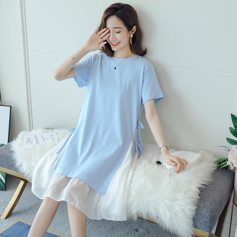 Pregnant woman Xia Fashion 2021 new Chauma pregnant women's blouses Long version loose pure cotton out of fashion Pregnant Woman Foreign Dress