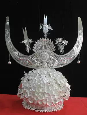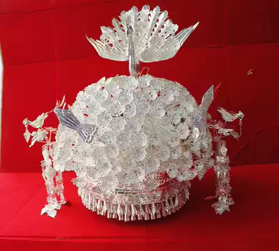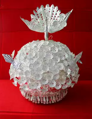 Guizhou Miao silver jewelry Miao hat headgear chest collar yellow flat silver cap