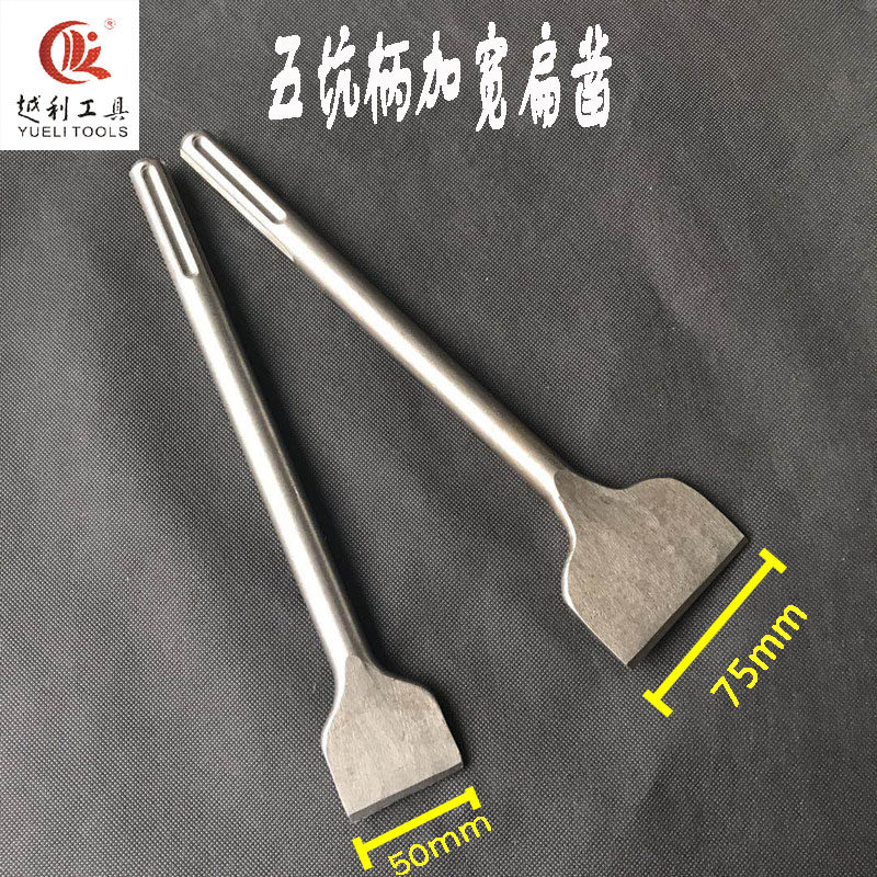 Five-pit impact drill bit electric pick lengthened and widened round handle two pits flat chisel electric pick tip chisel flat shovel concrete slotting