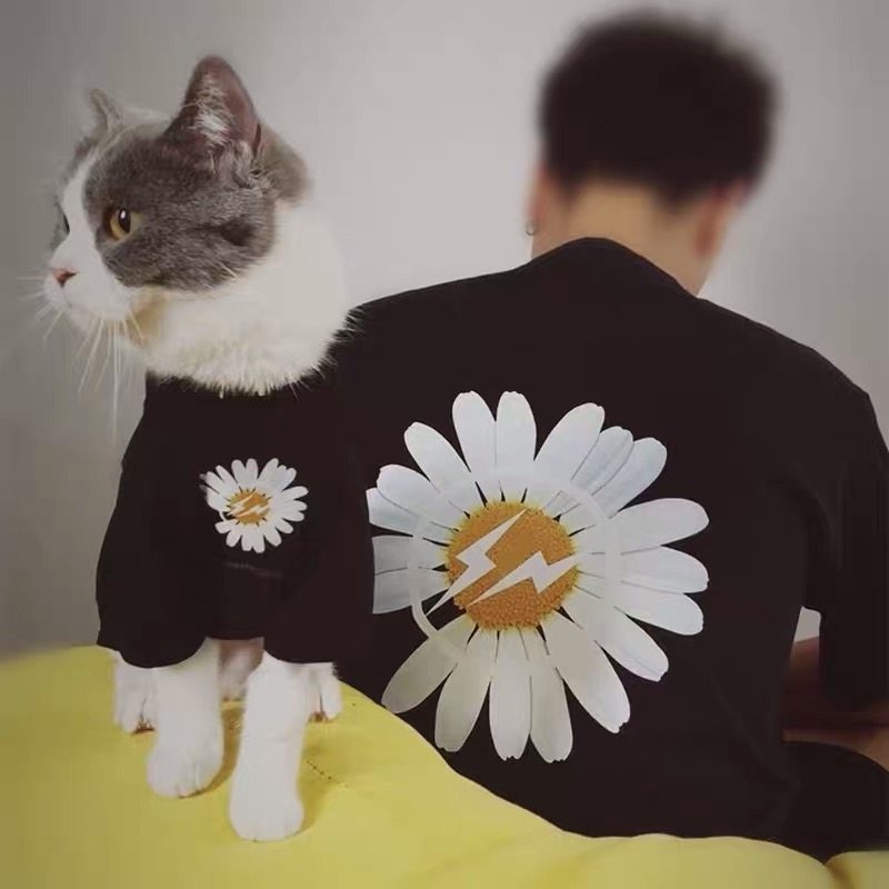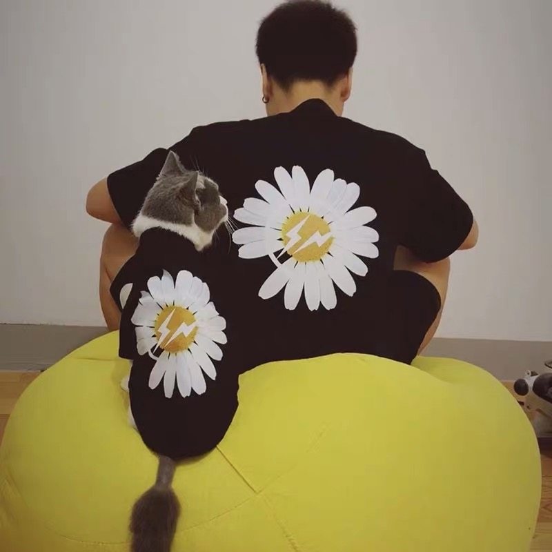 Pet cat dog parent - child daisies summer thin short - sleeveless vest pure cotton