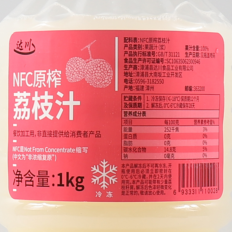 Dachuan NFC lychee juice 1kg freshly squeezed non-concentrated juice succulent powder lychee fruit tea net red frozen milk tea raw materials