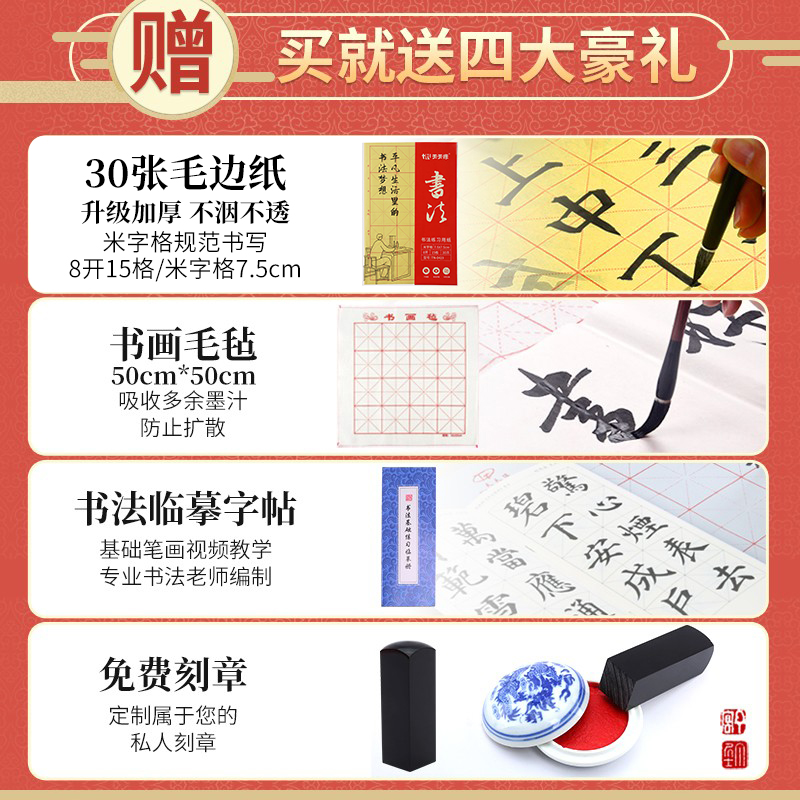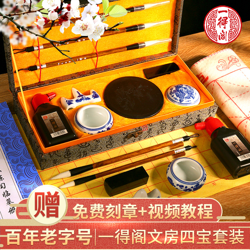 Ydege brush set beginner student four treasure pen ink paper inkstone set a full set of high-grade calligraphy set wolf brush small letter and special Chinese painting brush entry set