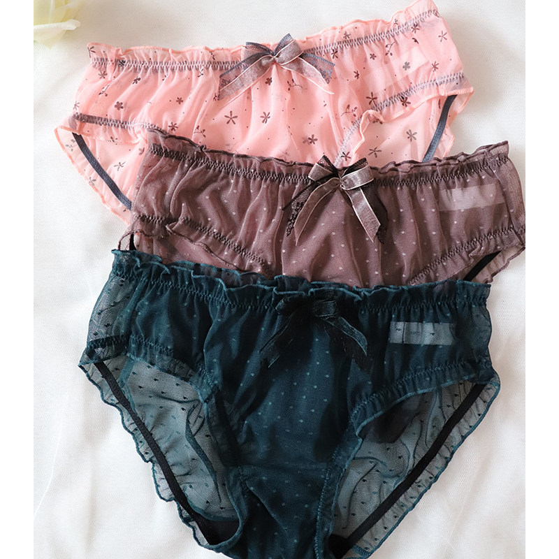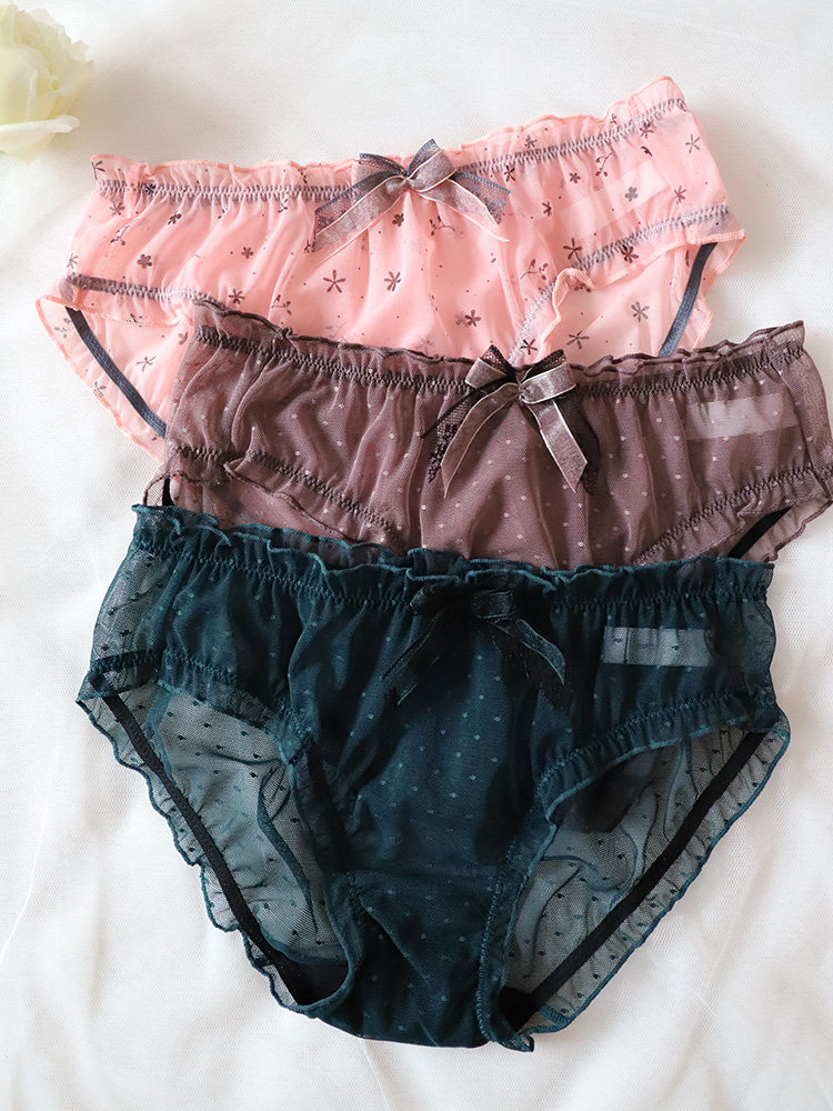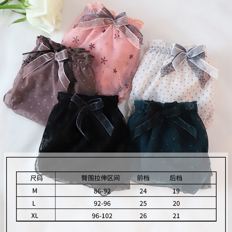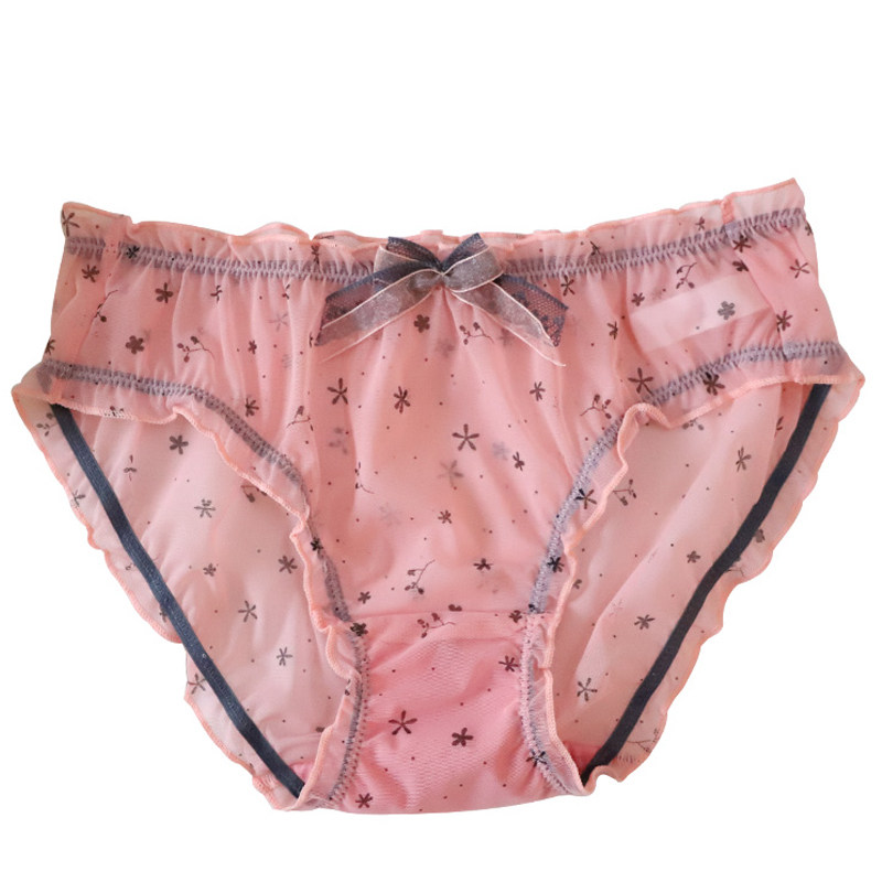 Wang Xiaotang custom summer mesh bow bow college style sweet sexy wooden ear middle waist women's underwear K076
