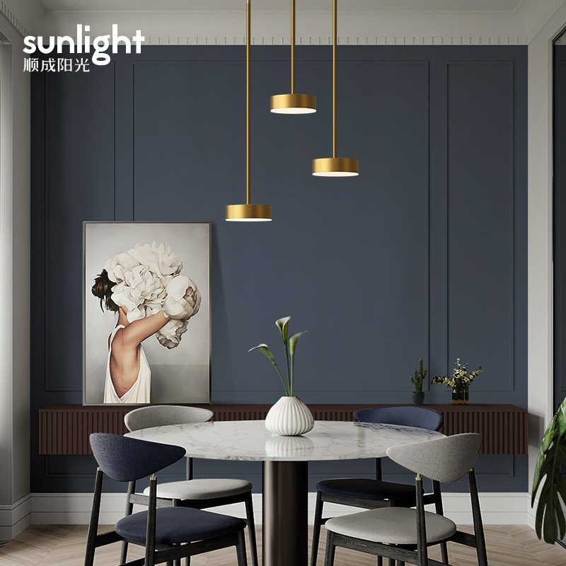 All-copper dining room chandelier Nordic modern simple table lamp Bar chandelier Personalized creative bedroom bedside lamp chandelier
