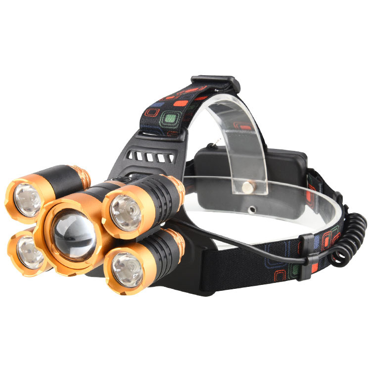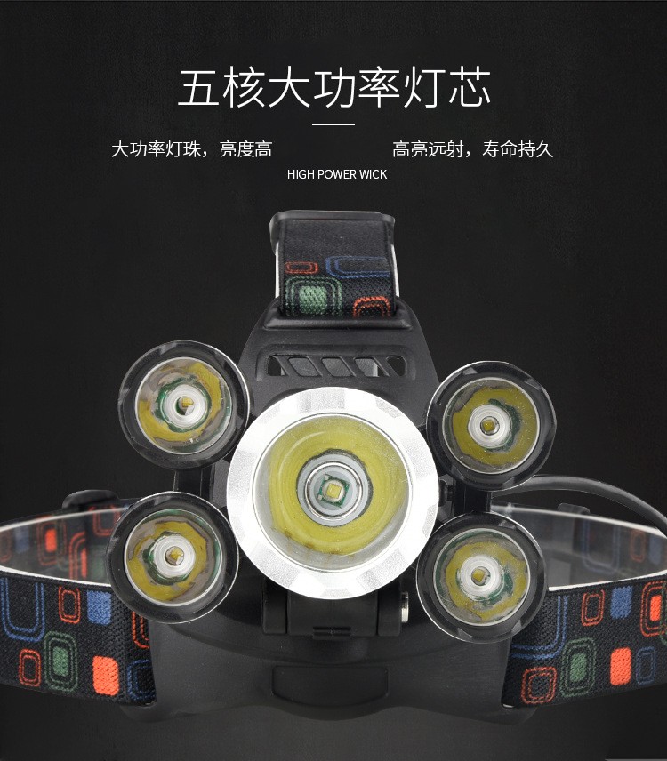 High power searchlight outdoor LED aluminium alloy head lamp T6 intense light charge 5 headlights night fishing light floodlight