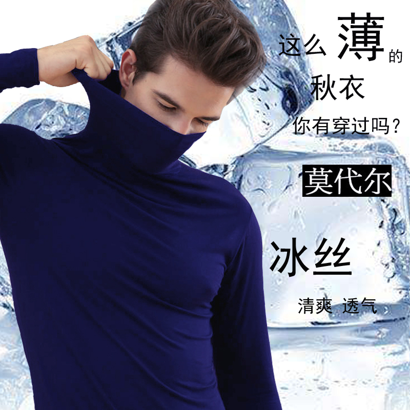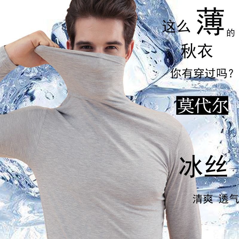 Summer MoDel thin section men's high collar ice lingerie long sleeves inner lap clothes slim fit single piece white