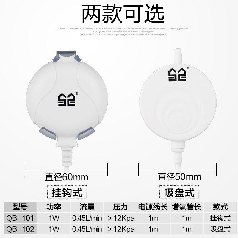 Mini ultra-quiet 1w hook type small round oxygen pump QB-101 Mini ultra-quiet 1w Suction cup type small round oxygen pump QB-102 Mini ultra-quiet 1 5w Suction cup type small round oxygen pump