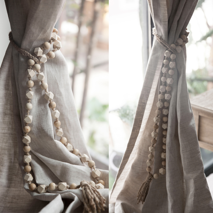 Beautiful living hand for curtain solid wood beads Beads Strap Natural Wind Hemp Rope Linen Bookshop Home Decoration Accessories