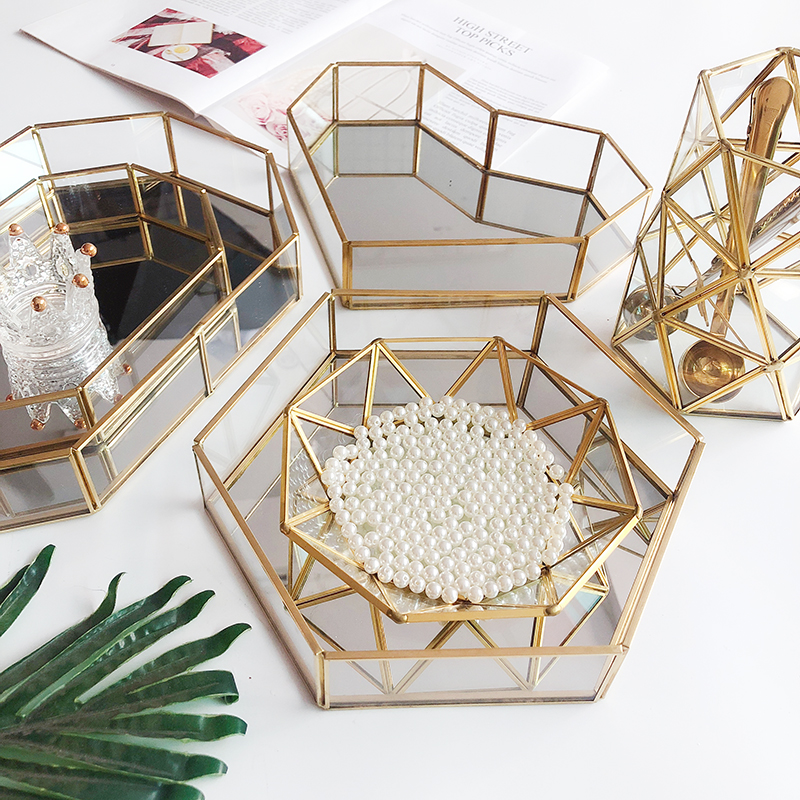 Nordic wind minimalist Creative Metal Brass Jewellery Containing Box Glass Retro Cake Dessert Pendulum Table