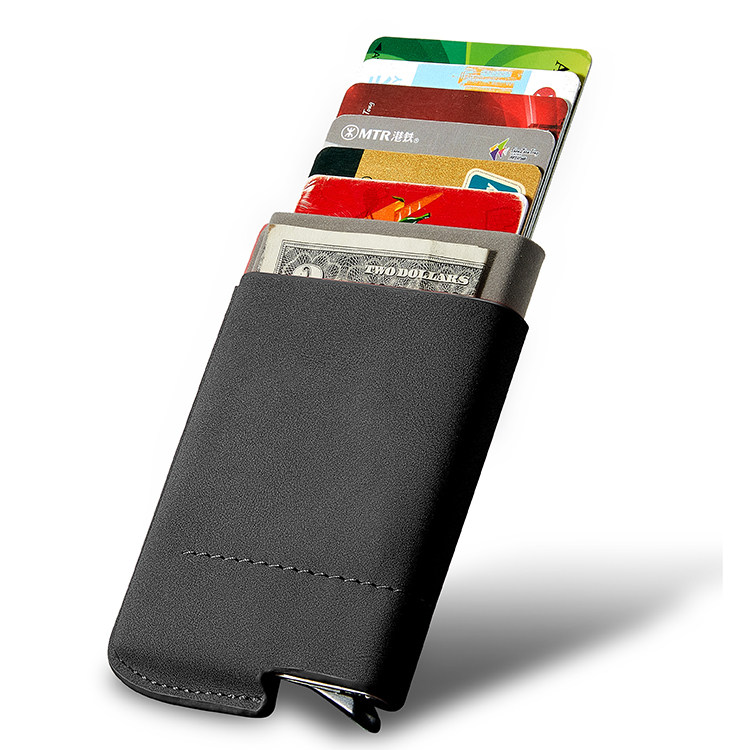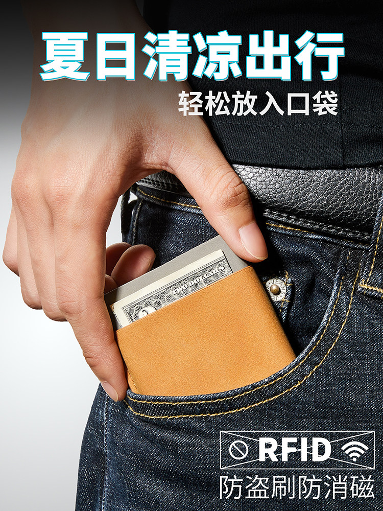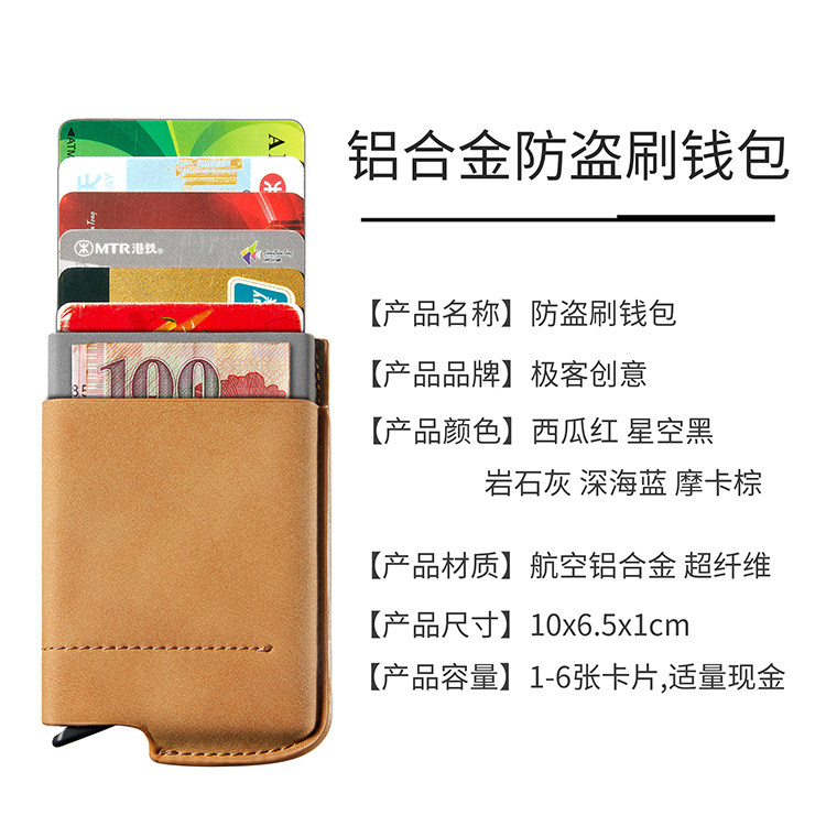 Creative automatic pop-up rfid anti-theft brush metal wallet men's portable mini portable small card bag women's credit card set