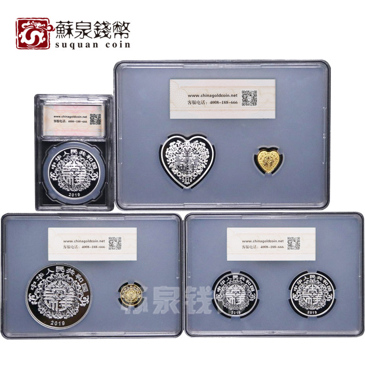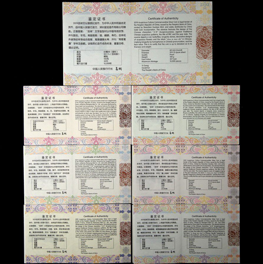 Gold total package coin 2019 auspicious culture commemorative gold and silver coin large set original certificate box 2 gold and 5 silver