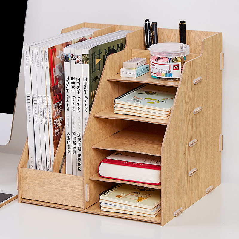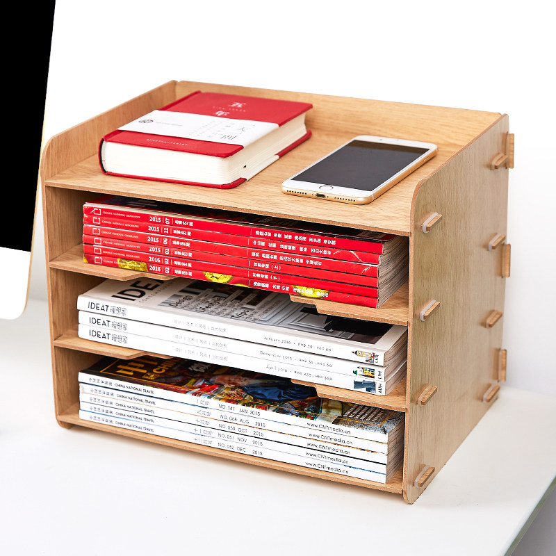 Office Book Stand Wooden Document Shelf Creative Document Containing shelf Desktop Magazine Shelf Brief information shelf Bookshelf