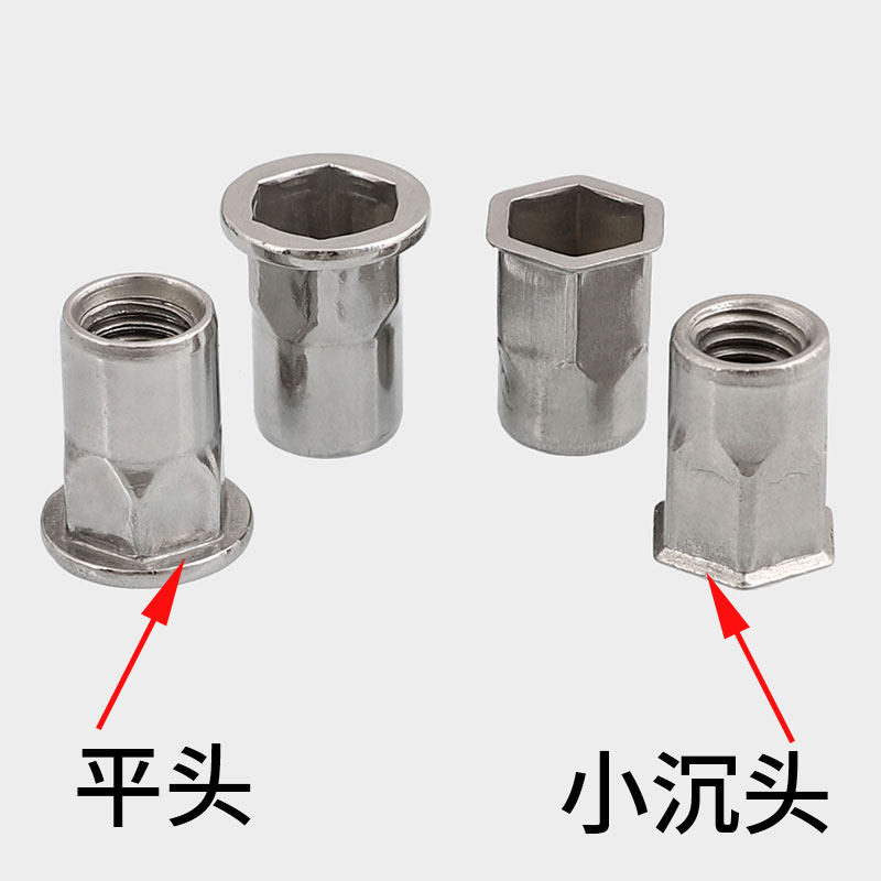 Riveter nut 304 stainless steel hexagonal flat head small sunk head inside and outside hexagonal screw cap M3M4M5M6M8M10M12