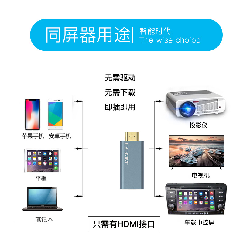 Wireless and screen mobile phone connects TV HD projector HDMI video 5G transmission interconnected screen