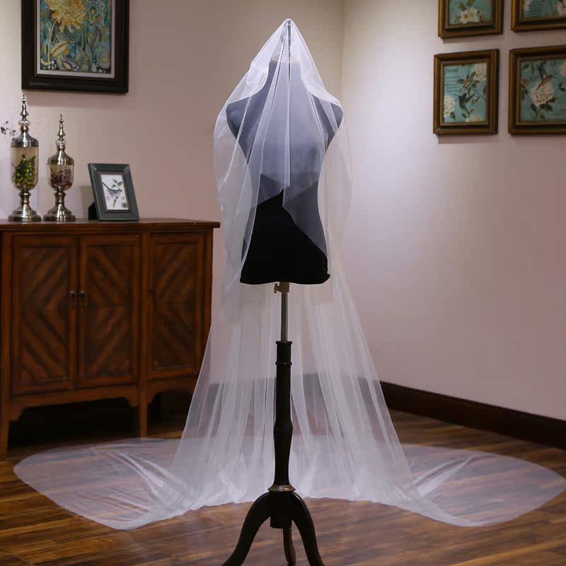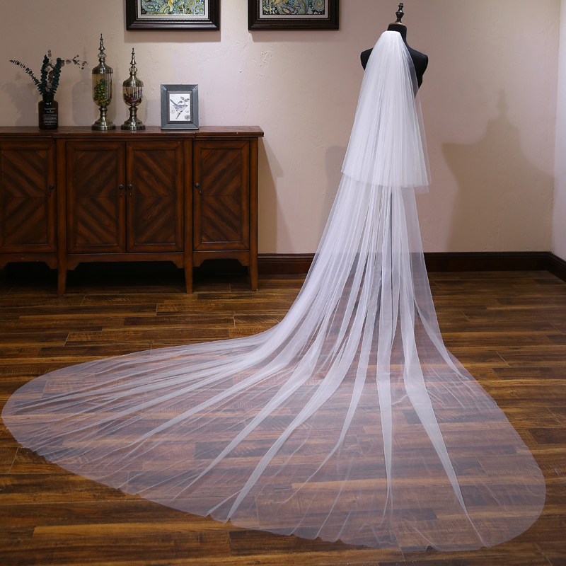 Douyin same paragraph luxury veil female bride big trailing wedding wedding veil headdress super fairy long plain yarn white