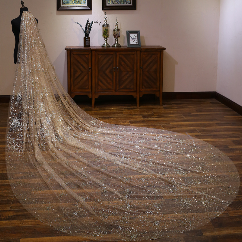 Champagne star star dress bride ultra long drag wedding dress dress dress dress long edition super-sen white