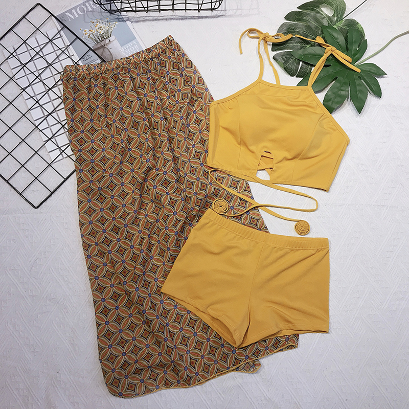 Swimsuit women's two-piece three-piece long dress thin chest gathered conservative beach vacation ins hot spring swimming suit