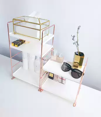 Nordic wrought iron electroplating shelf ins wind bathroom floor-to-ceiling vanity rack Multi-layer storage shelf Skin care finishing rack
