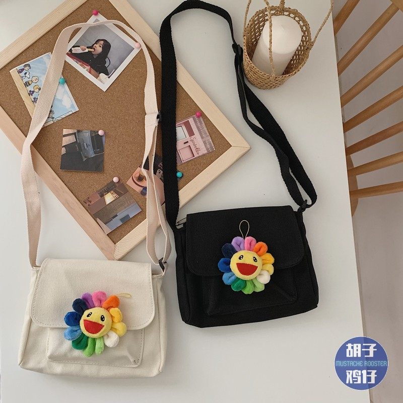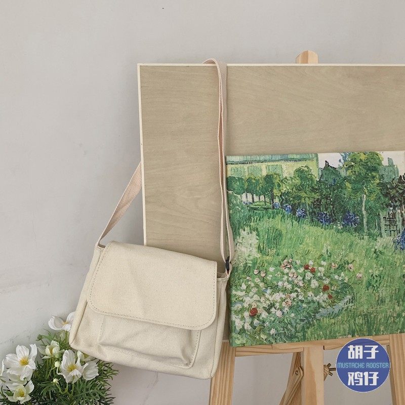 South Korea Ins retro brief Little Fresher Canvas Bag of Women's Day Department Original Cebu Soft Girl with Teenage Girl Slanted Satchel