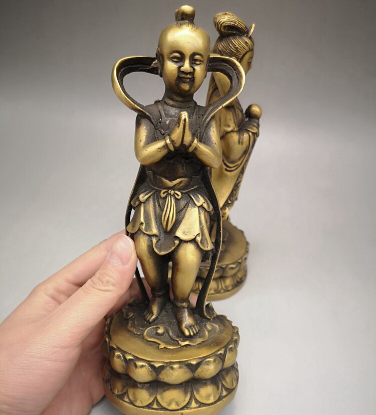Retro Pure Brass Brass Boy Boy Boy Boy Couple Standing Like Bronze Statue Golden Boy Jade Woman Wedding Decoration Home Swing Piece