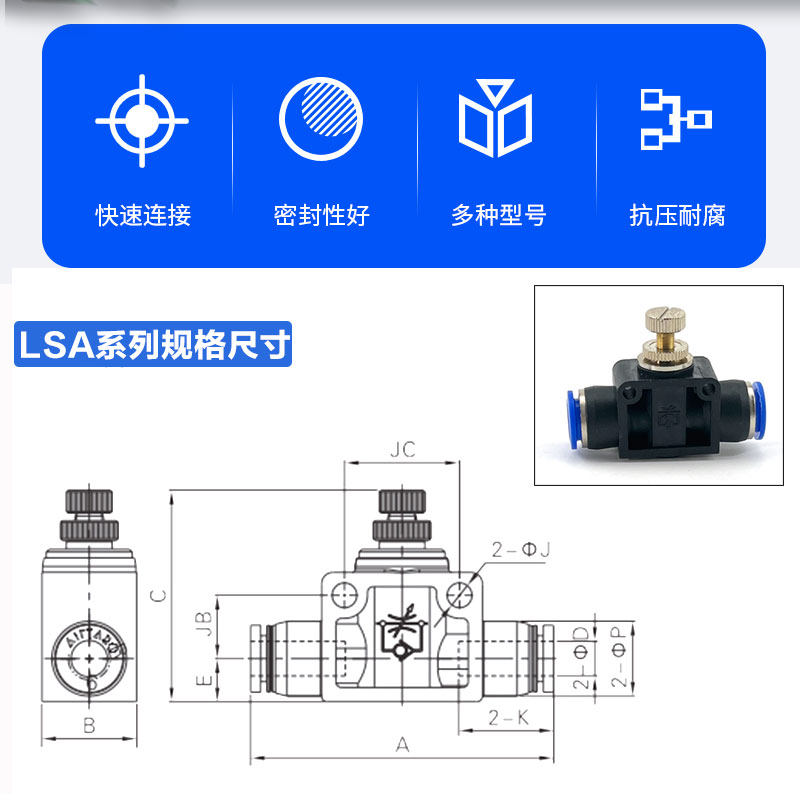 Boutique white pneumatic connector LSA-6 LSA-8 4 10 12m throttling adjustable pipeline valve quick plug