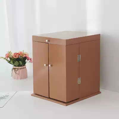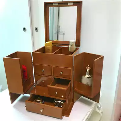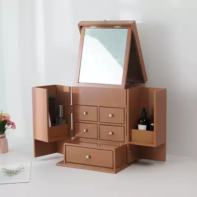 Nordic dust skin care product storage box with mirror large capacity desktop makeup Nail Box wooden multifunctional makeup table