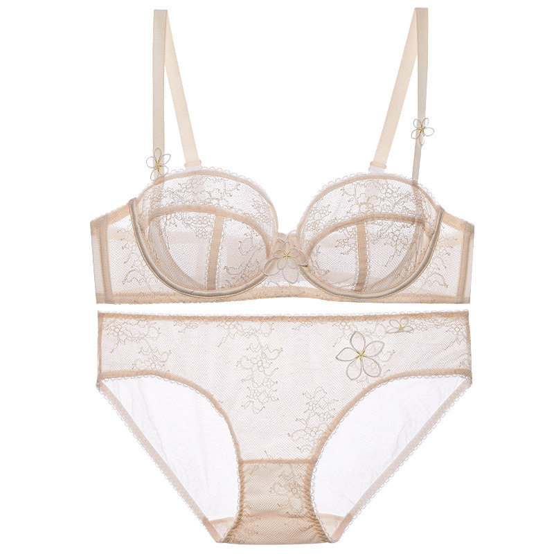 Runwei underwear women comfortable with steel ring thin sexy embroidered lace gather bra set
