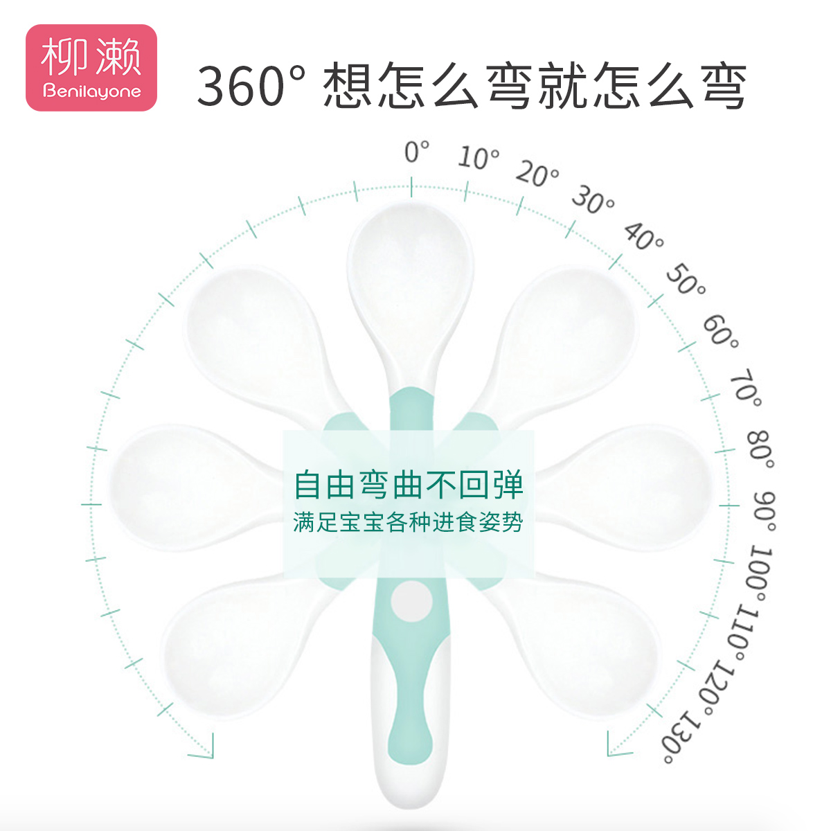 Liuase Baby School Eating Training Spoon Baby Coes Spoon Elbow Fork Spoon Suit Bendable Children Cutlery