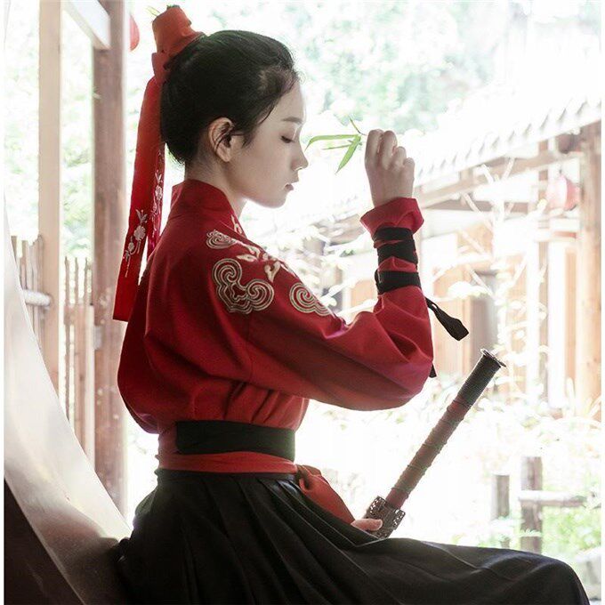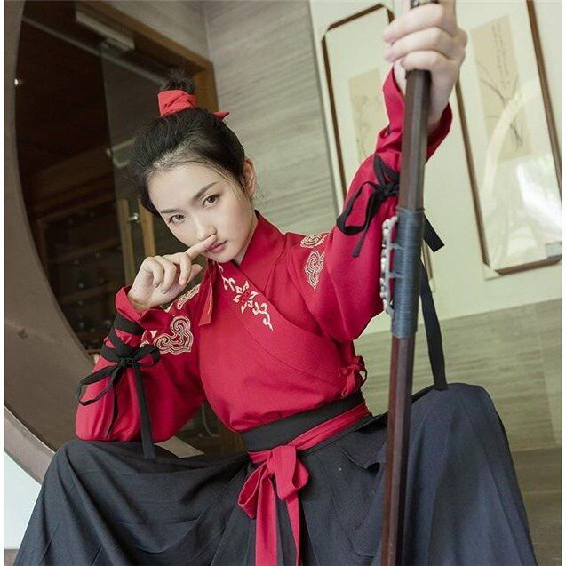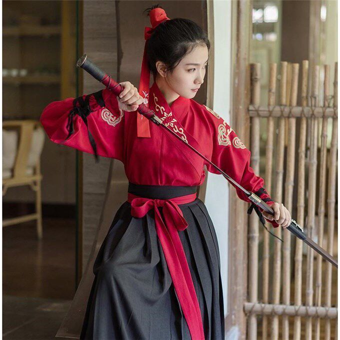Original martial arts Hanfu couples daily non-costume Chinese style embroidery cross-collar waist-length skirts for men and women