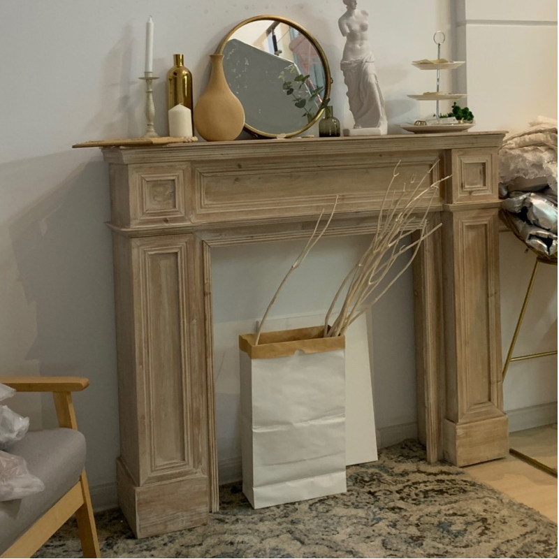 American solid wood retro folk sleeping fireplace decoration cabinet Fauly-style minimalist fireplace shelf Wedding Photography Props-Taobao