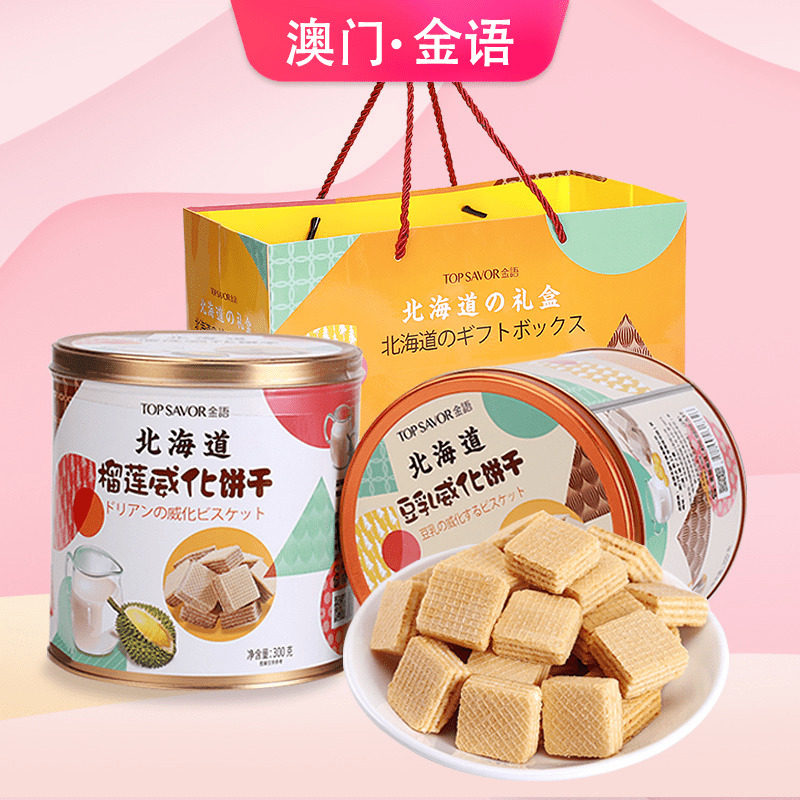Macau Gold Hokkaido Bean Milk Taste Durian Taste Canned Vegan Biscuits Barrel Office Casual Snacks Group Purchase