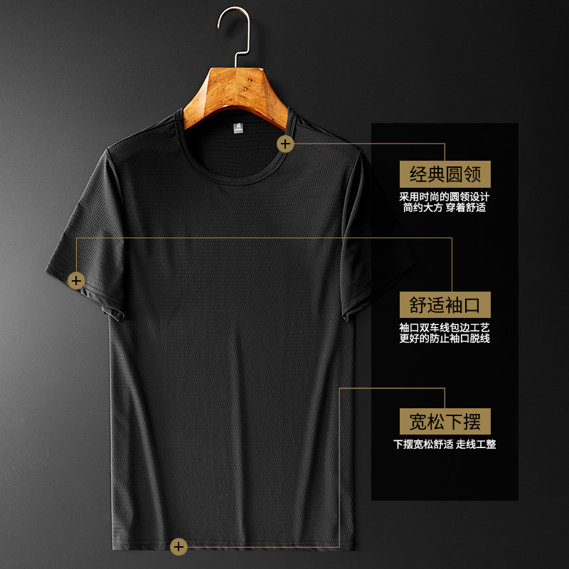 Large size ice silk breathable mesh t-shirt men's trendy fat loose quick-drying short-sleeved T-shirt fat plus fat plus half-sleeved shirt