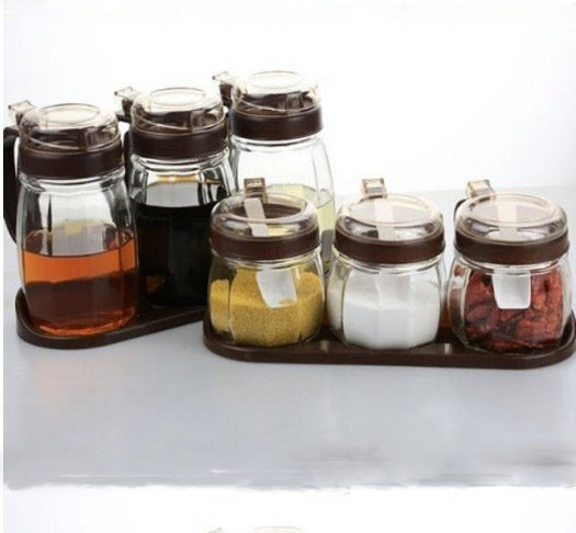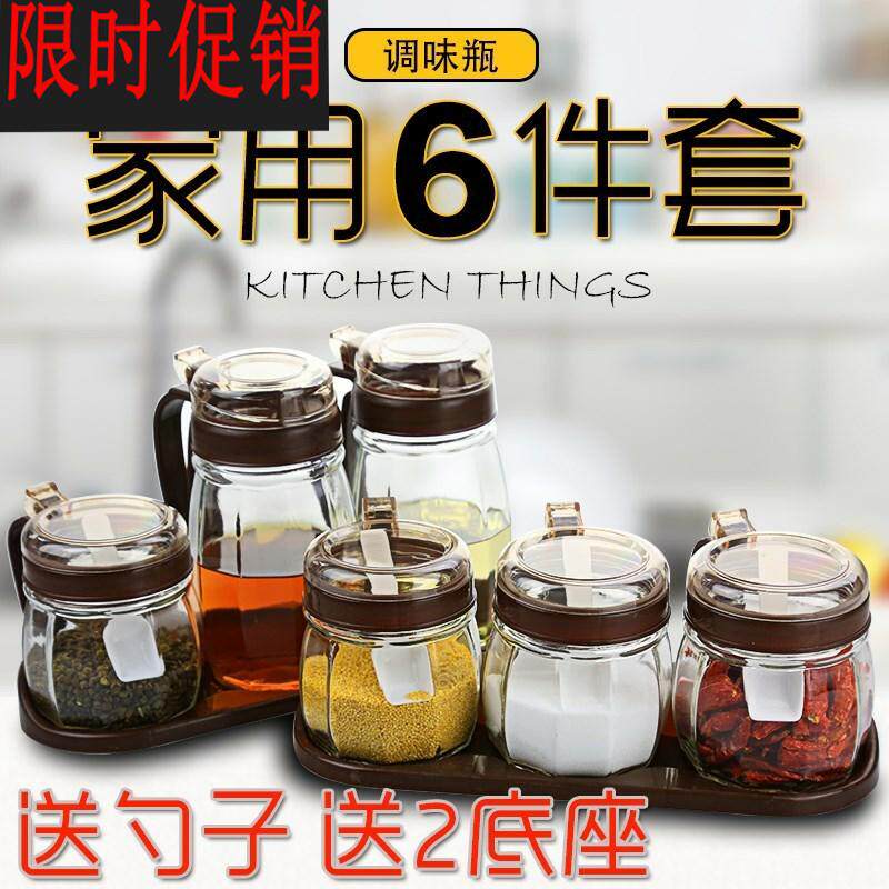 Kitchen taste fine seasoning canned oil edible oil container glass dust-proof and insect-proof 6-piece set seasoning cans