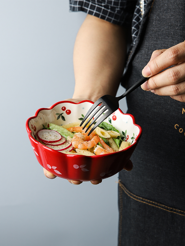 Xinjiang Cherry Bowl Retro Hand-painted Lace Ceramic Small Bowl Fruit Salad Bowl Sweet Bowl Sweet Bowl Baby Cob Bowl-Taobao