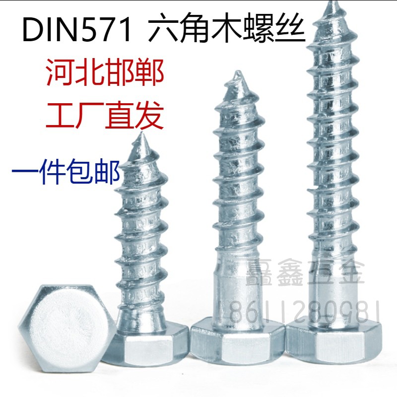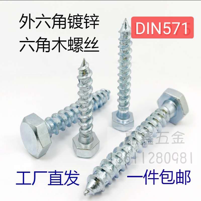 Hexagon wood screw GB102 galvanized carbon steel white self-tapping wood screw Outer hexagonal head self-tapping wood screw m6m8