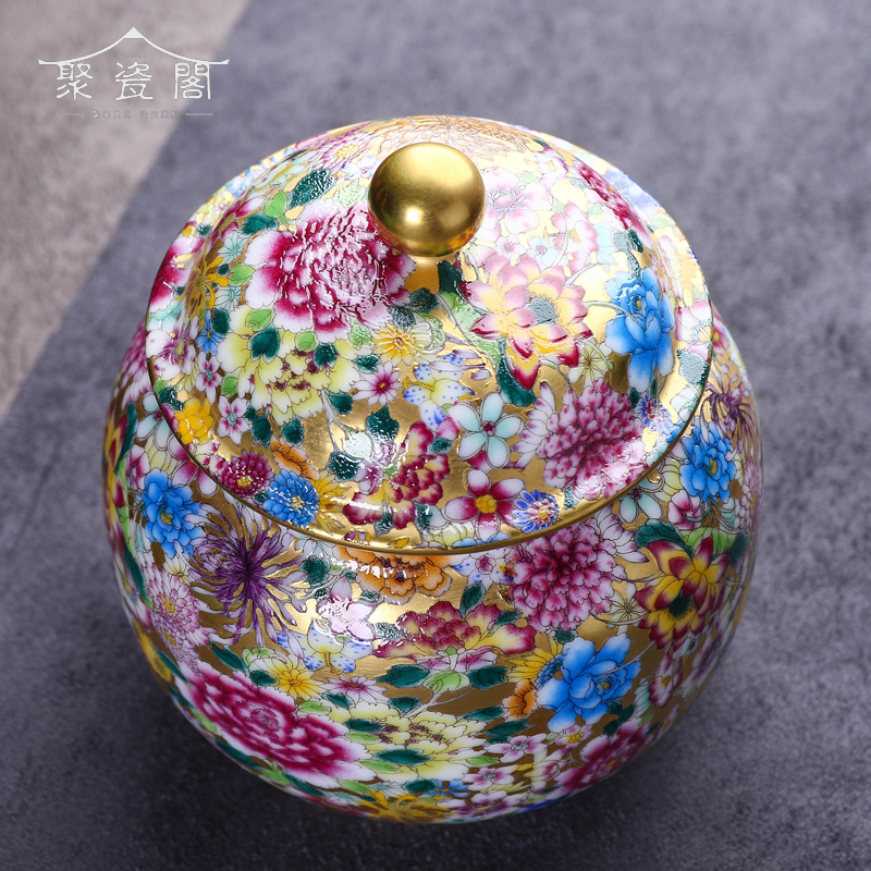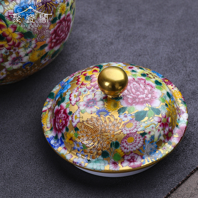 Juci Pavilion Jingdezhen Ceramic Tea Pot Handmade famille rose Wanhua Tin Pot Sealed Pot Small Pu 'er Kung Fu Tea Wig