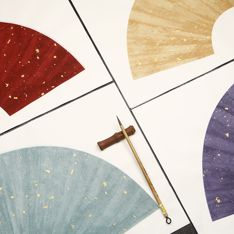Retro flower color batik and wind vegetarian color Xuan paper slalom half raw cooked small block flow sand sprinkle gold letterbook French works Xuan paper