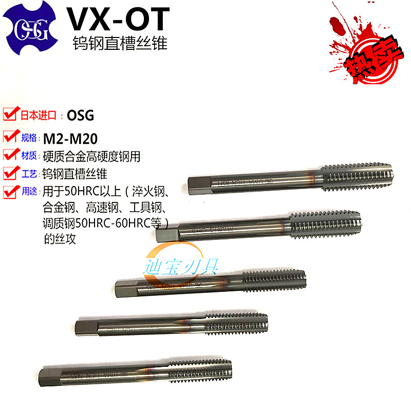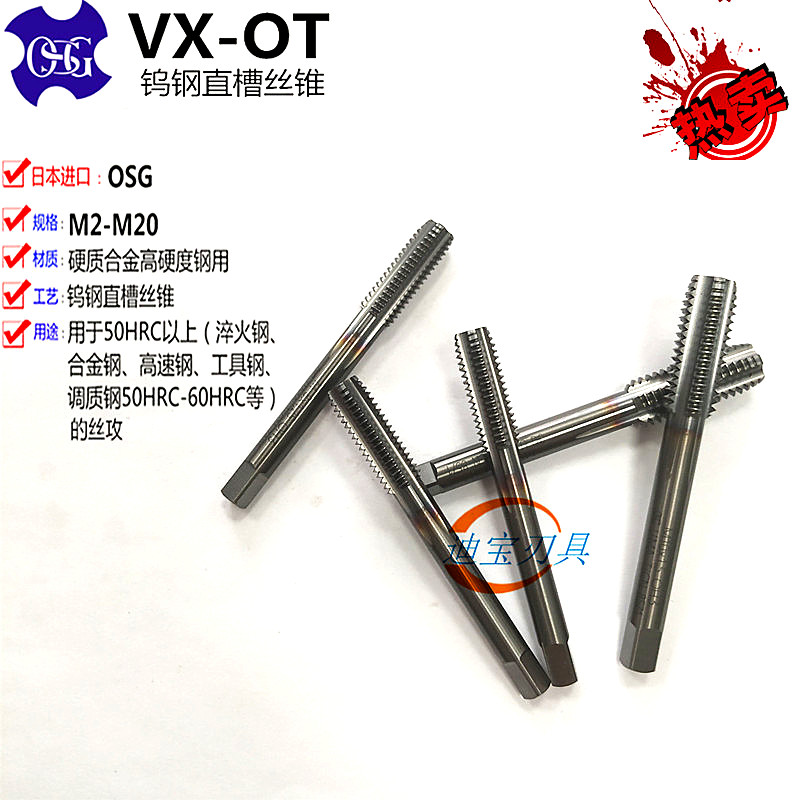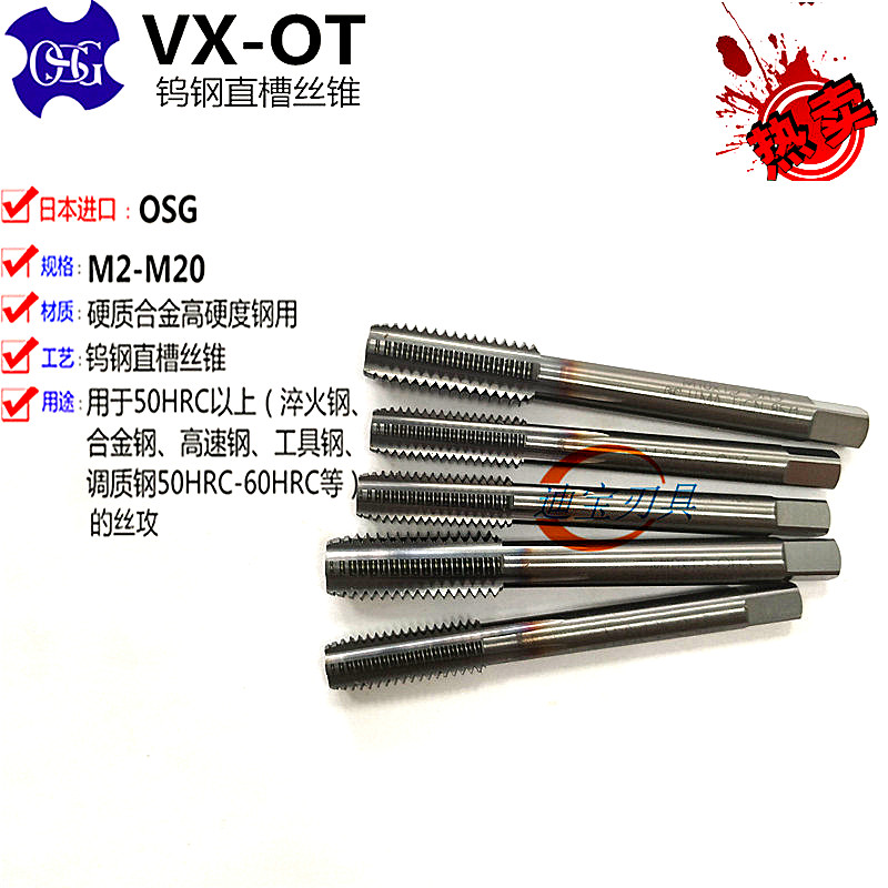 Japan OSG tungsten steel straight groove screw tapping alloy machining high hardness screw tapping M2 5M3M4M5M6X1M8M10M12