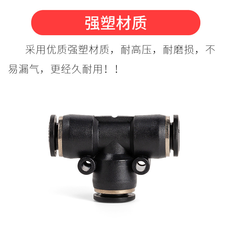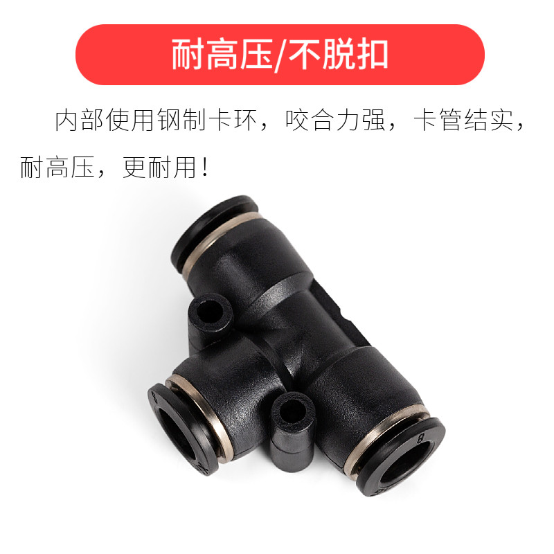 Boutique trachea quick connector black plastic tee PE-04 6mm8 per cent air duct 12 14 16 glue quick plug