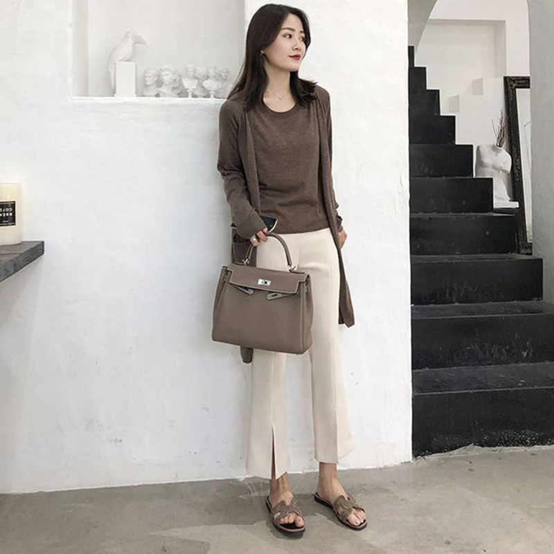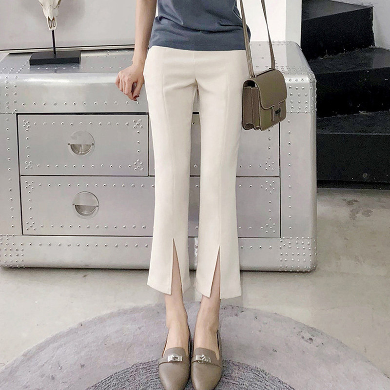Pregnant women pants micro horn pregnant women pants spring and summer thin Korean version of high waist front split pants casual pregnant women wide leg pants