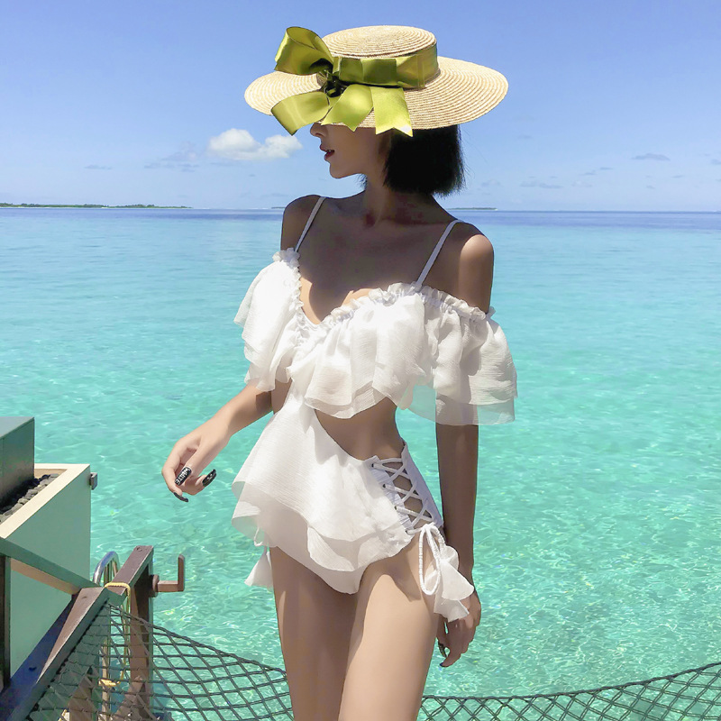 Miss Han's new swimsuit female sexy holiday slim covered swimsuit fairy white breast gathered seaside swimsuit