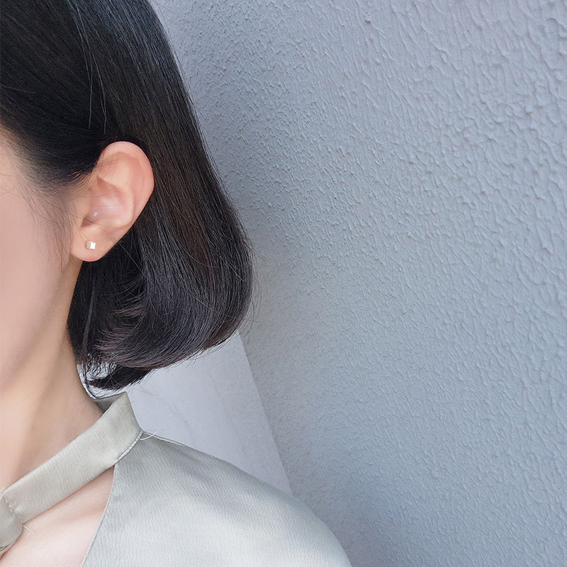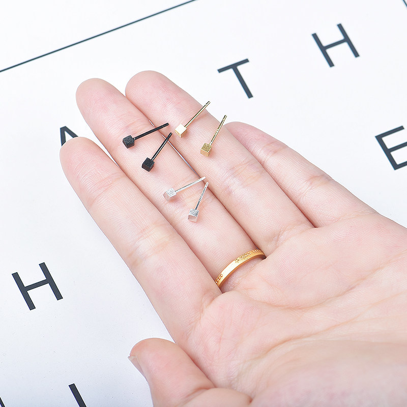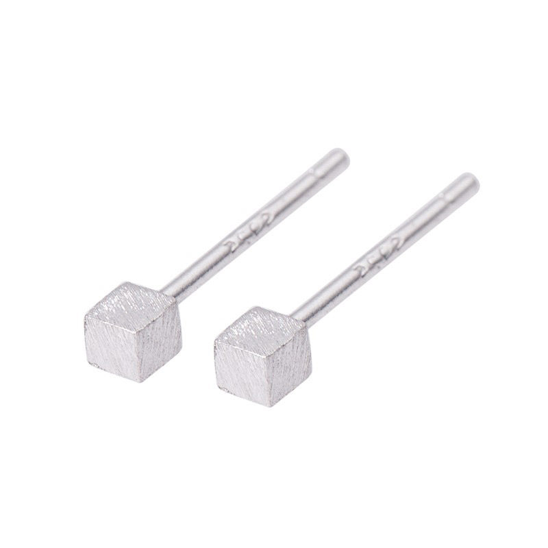 S925 sterling silver ear pin female brushed geometric square ear bone temperament Korean version of the personality simple wild mini small earrings