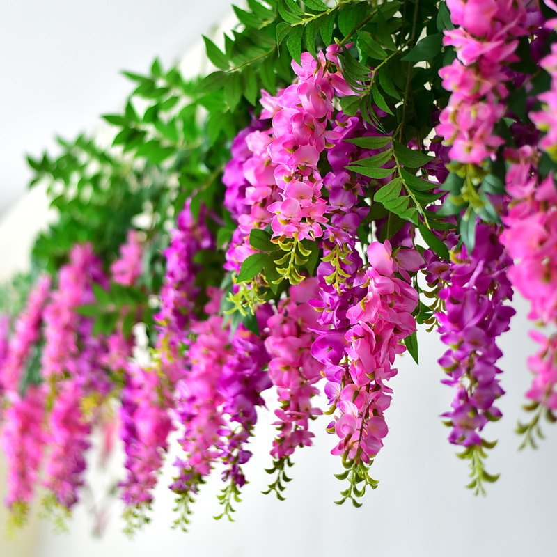 Simulation Purple Vines Flowers Fake Flowers Vines Decorated With Suspended Ceiling Flowers Vines Indoor chandeliers Flowers Strings Plastic Vine plant roofs