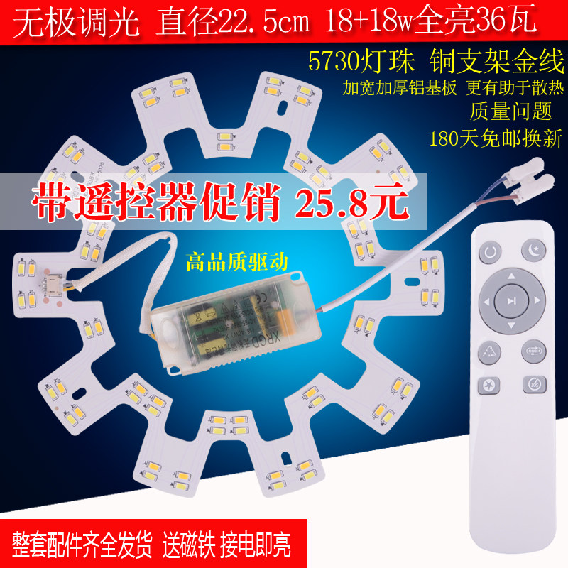 Led set lamp board circular ceiling lamp modification stepless dimming three-color ring wick light source monochrome double
