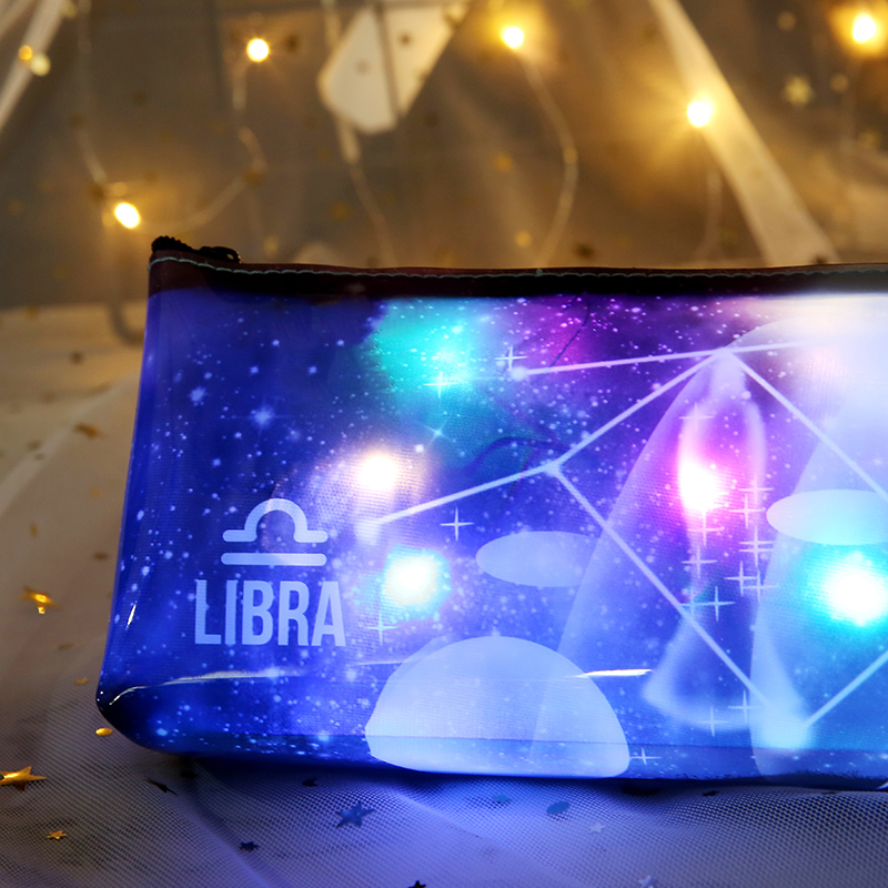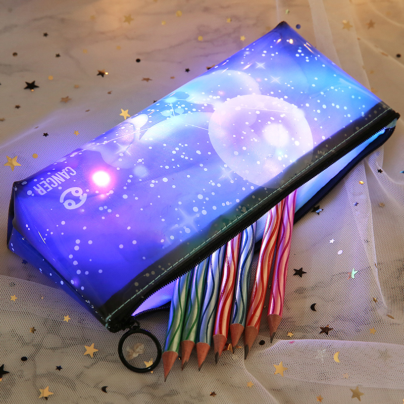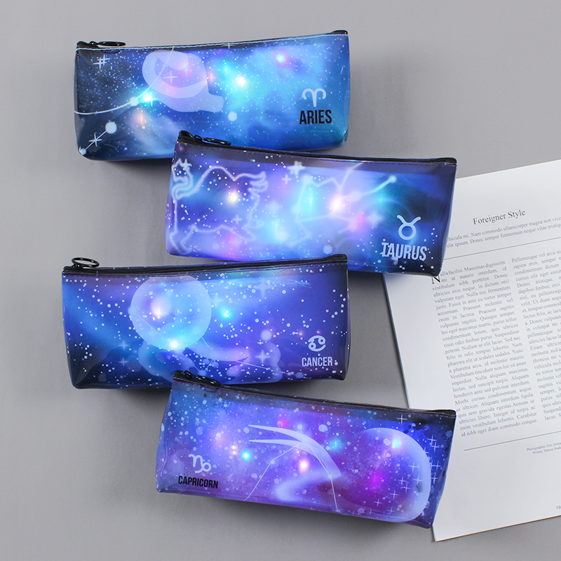 twelve Constellation pen Bag Shake the same Star Sky Flash Light Pencil Case Students Brief Creative Men And Women Large Capacity Lead Pencil Case Nets Red Ins Day Series Pencil Bag Stationery Bags Built-in Color Lights Adjustment