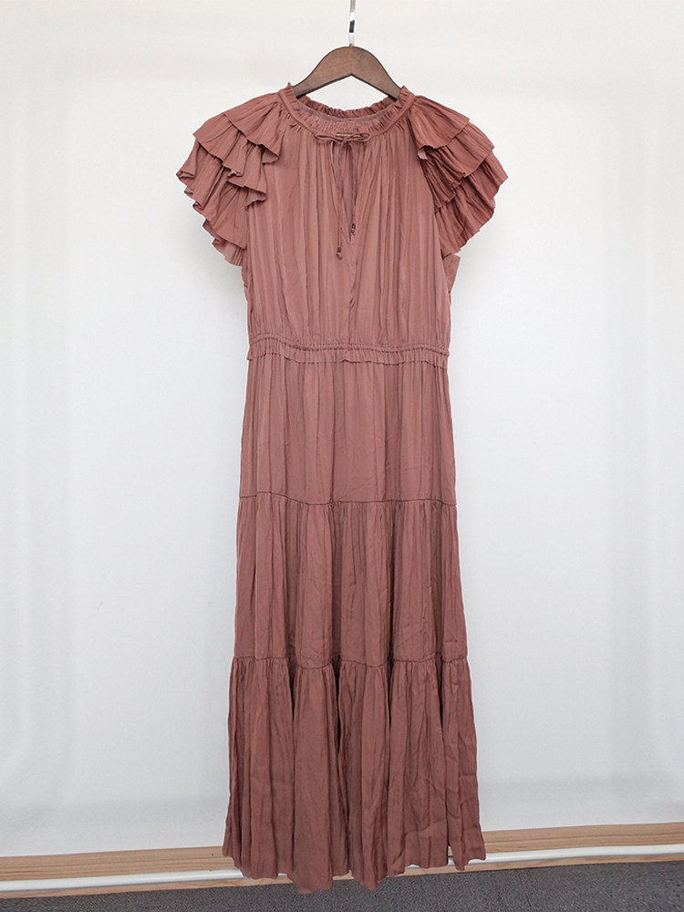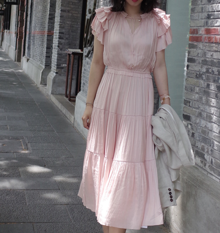 LunaMade silky texture, cool in summer, layered romantic swing, 1 4-inch socket wrench sleeve dress
