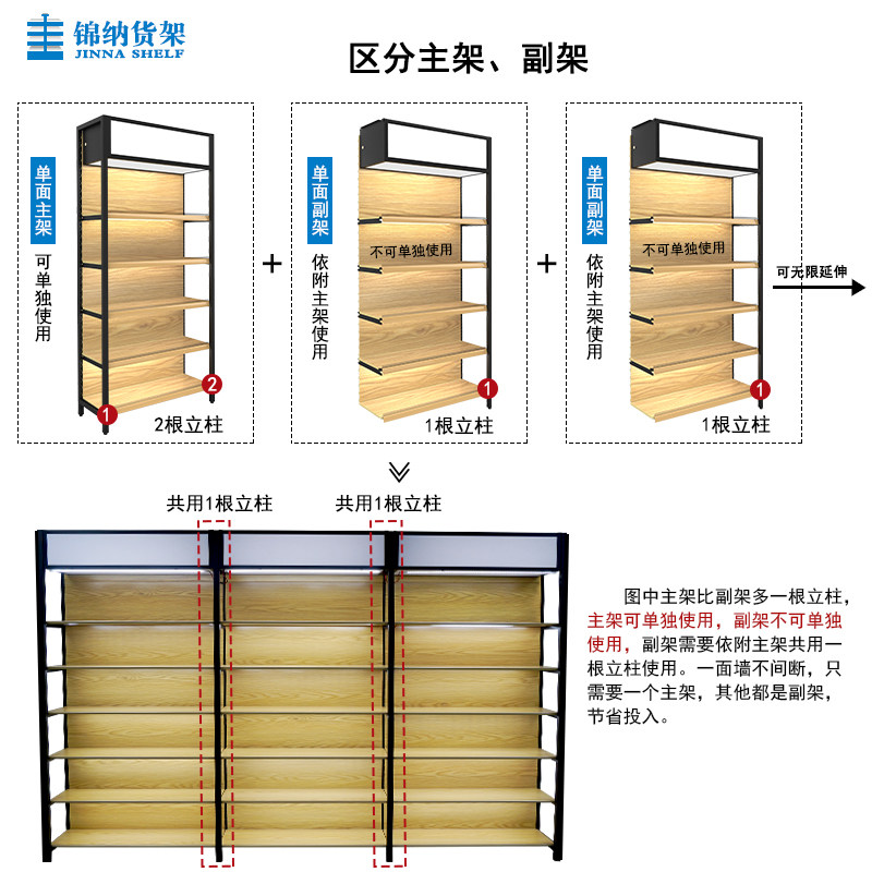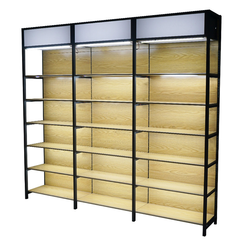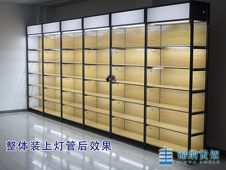 Jinna single-sided iron transfer wood grain with LED light box Supermarket stationery pregnant and baby shelves Boutique display shelf