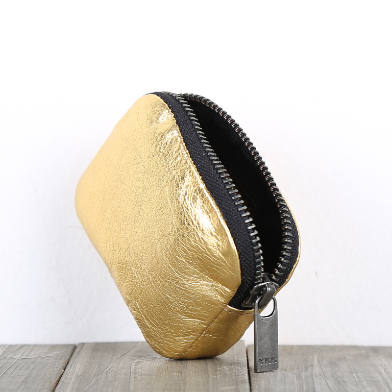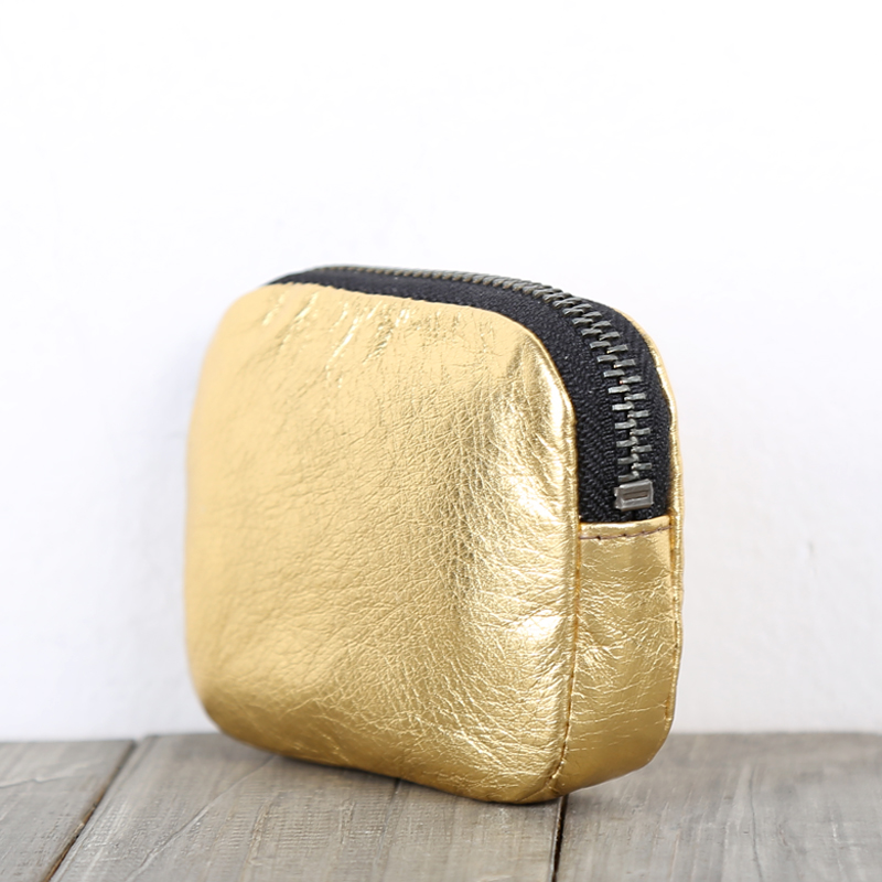Original Handmade Cow Leather Coin Zero Wallet Golden Bull Leather Card Bag Small Money Clip Car Key Data Line Containing Bag